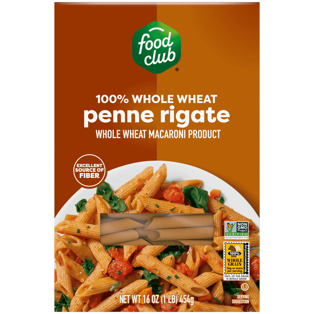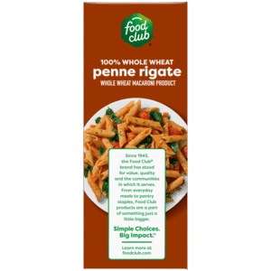 Food Club 100% Whole Wheat Penne Rigate 16 oz