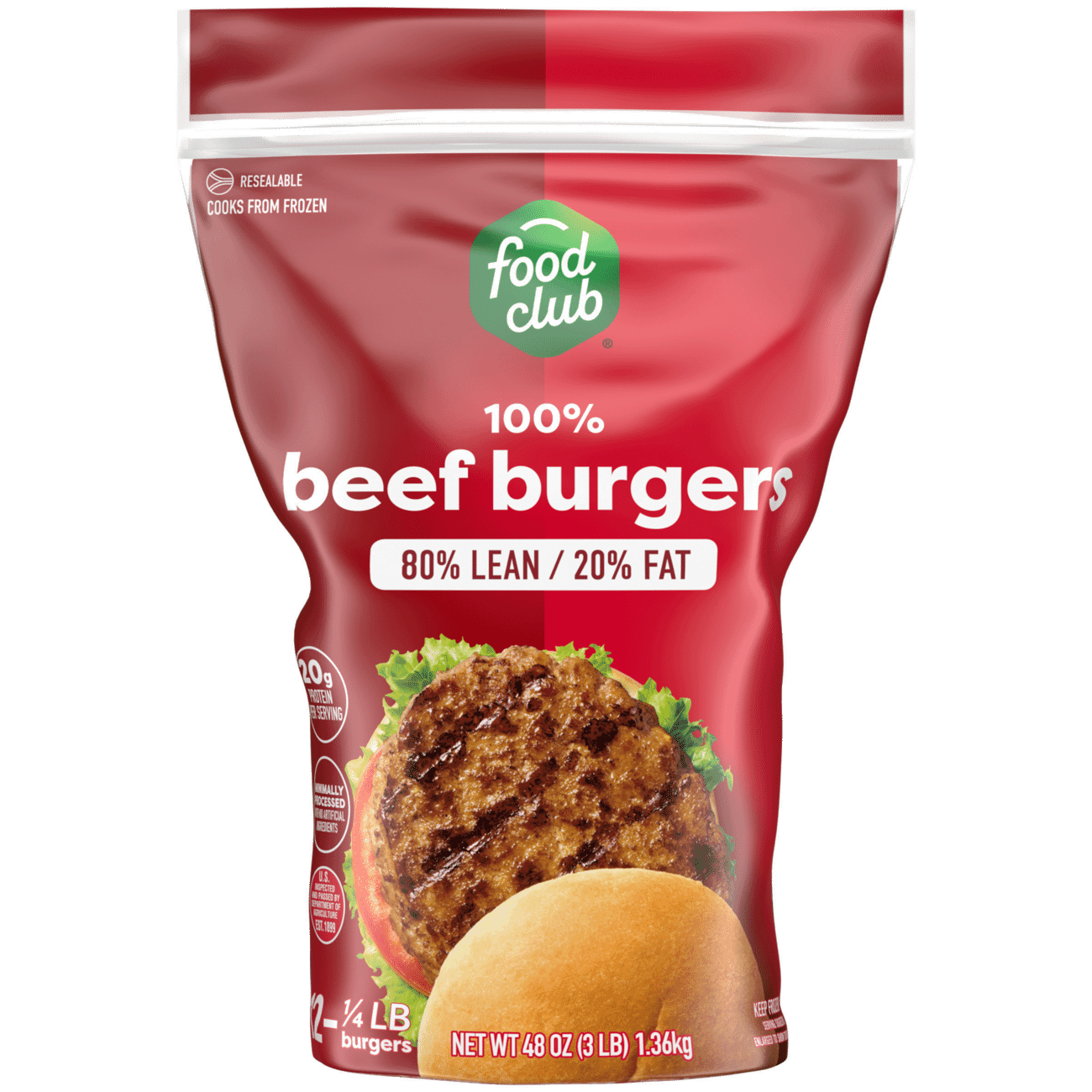 Food Club 80%/20% Beef Burgers 12 – 0.25 lb Each