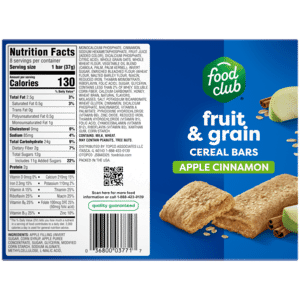 Food Club Fruit & Grain Apple Cinnamon Cereal Bars 8 – 1.3 oz Bars