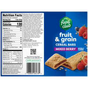 Food Club Fruit & Grain Mixed Berry Cereal Bars 8 – 1.3 oz Bars