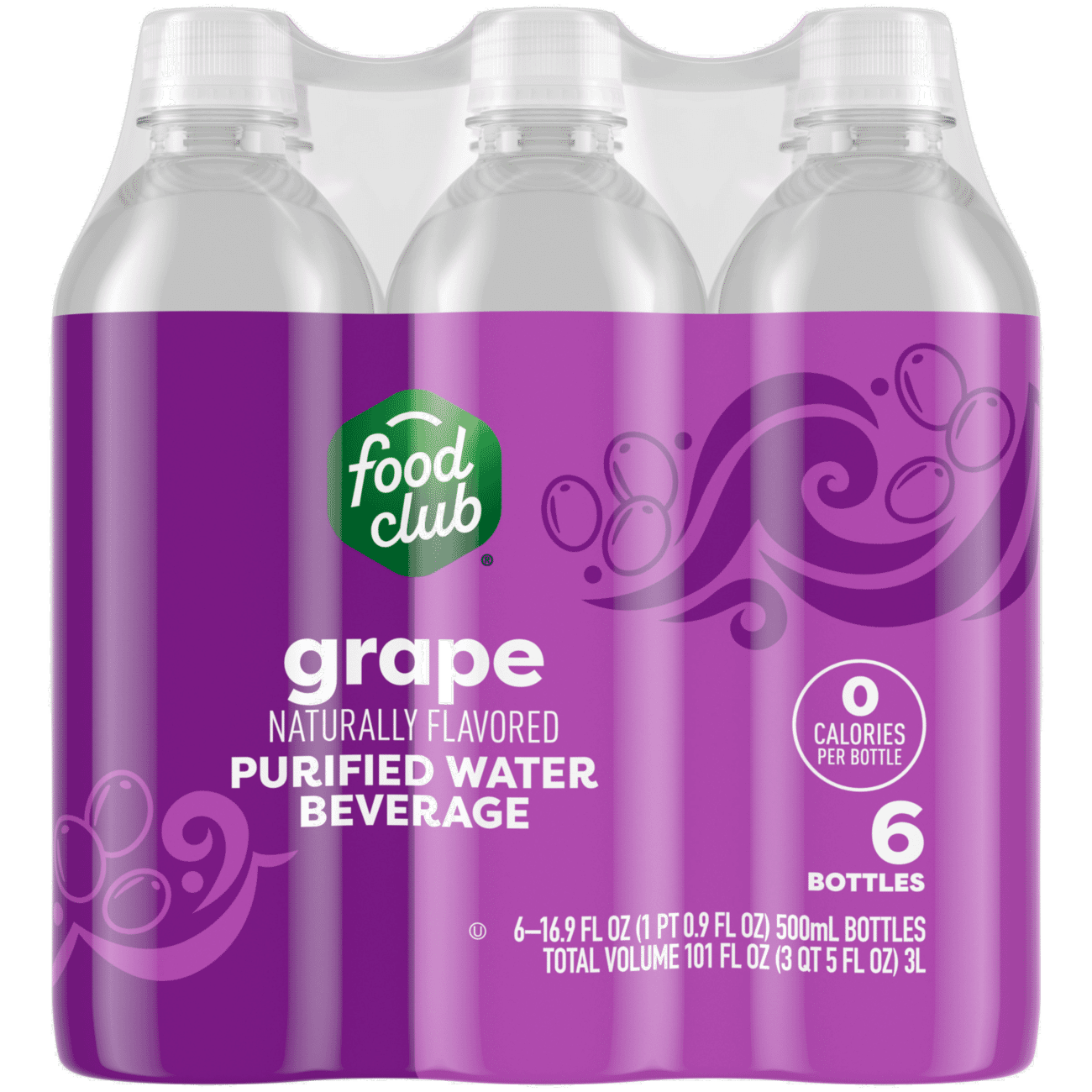 Food Club Grape Purified Water Beverage 6 – 16.9 fl oz Bottles