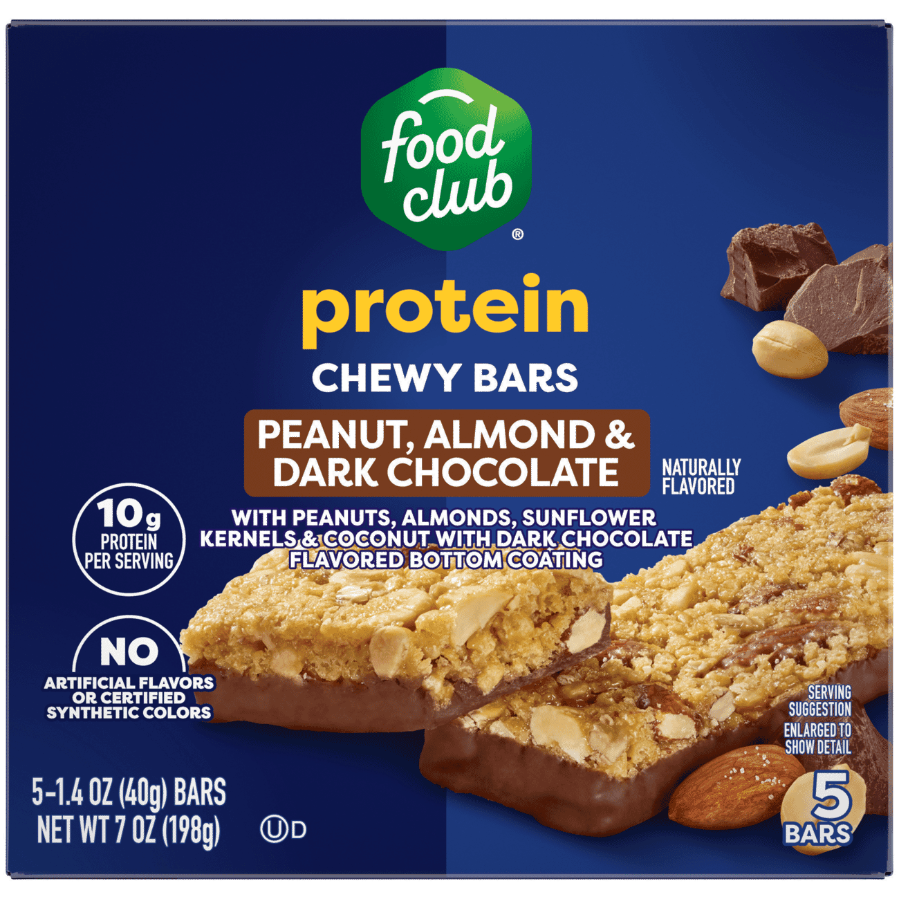 Food Club Protein Peanut Almond & Dark Chocolate Chewy Bars 5 – 1.4 oz Bars