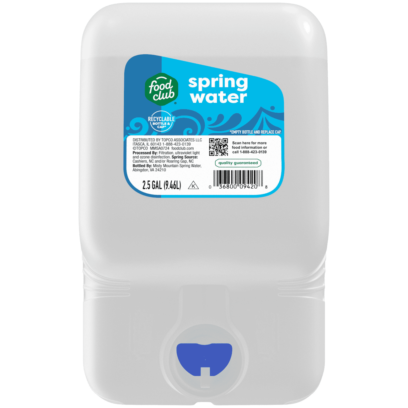 Food Club Spring Water 2.5 gal